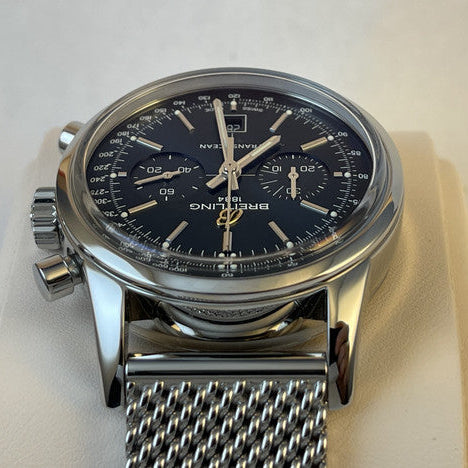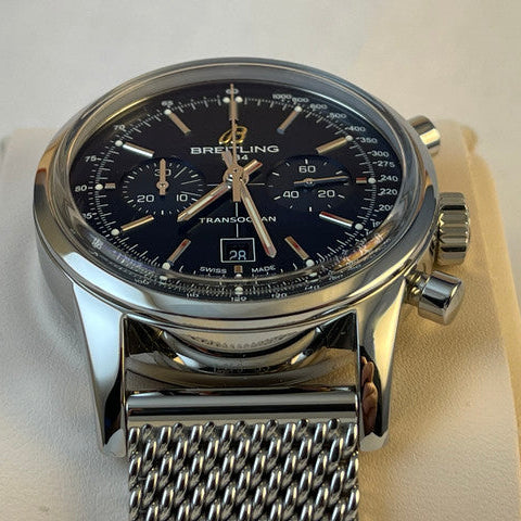 This Breitling Transocean Chronograph 38 is in excellent pre-owned condition, showing minimal signs of wear. The watch has been professionally serviced and polished, ensuring it looks and performs like new.
