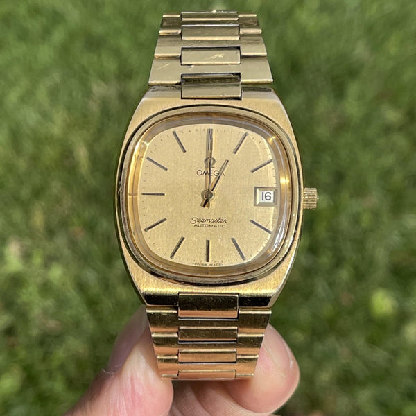 The Omega Seamaster 166.0207 is a unique vintage timepiece, recognized for its distinct TV-shaped dial and timeless charm. This model represents Omega’s innovation and design experimentation during the 1970s, making it a standout addition to any collection.