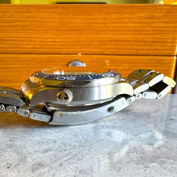 The Omega Seamaster Diver 300M Co-Axial Master Chronometer continues the brand's tradition of robust, elegant dive watches. This model, with its striking blue ceramic dial and bezel, is a perfect blend of modern design and advanced technology, suitable for both diving adventures and everyday sophistication.