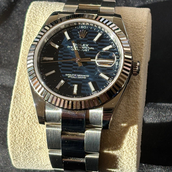 Rolex Datejust 41 126334 – Blue Motif Dial, White Gold Fluted Bezel, Jubilee Bracelet