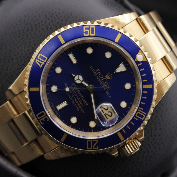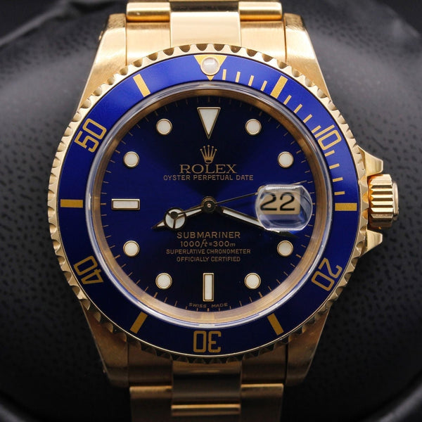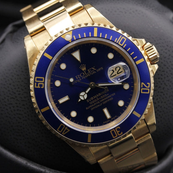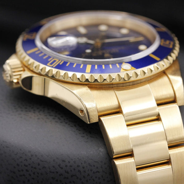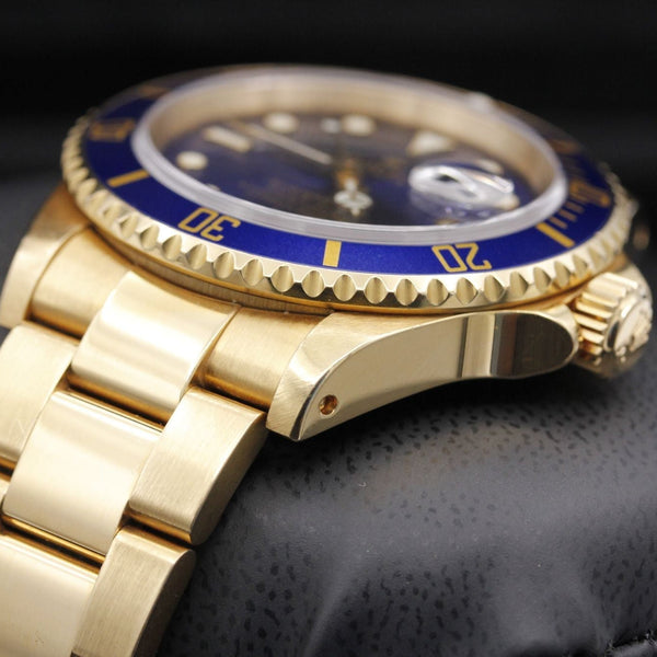 Rolex Submariner 16618 – Blue Dial, Yellow Gold, 40mm – Excellent Condition