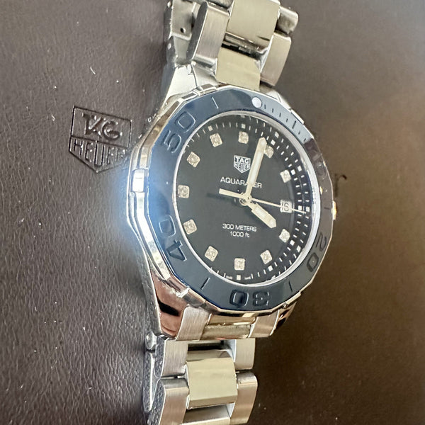 This TAG Heuer Aquaracer 300M Quartz 35mm is in excellent condition, with minimal signs of wear. The sapphire crystal and ceramic bezel are flawless, and the strap is in like-new condition. A stunning and reliable timepiece ready for its next owner.